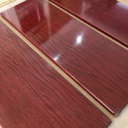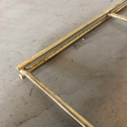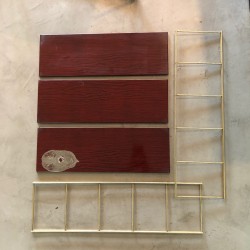 3 plateaux métalliques laqués zébrés rouge et noir patinés par le temps et échelles en métal lisse doré. Dans la lignée des étagères String, Tomado...