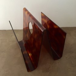 Porte revues année 70 en plexiglass couleur écailles de tortue.