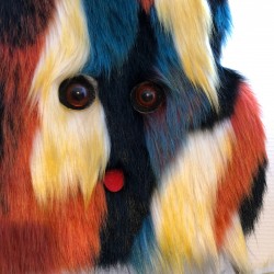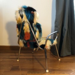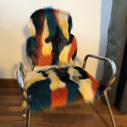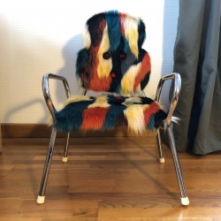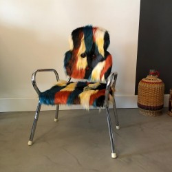 L'assise et le dossier ont été recouvert de fausse fourrure multicolore pour un effet Choubaka à souhait.