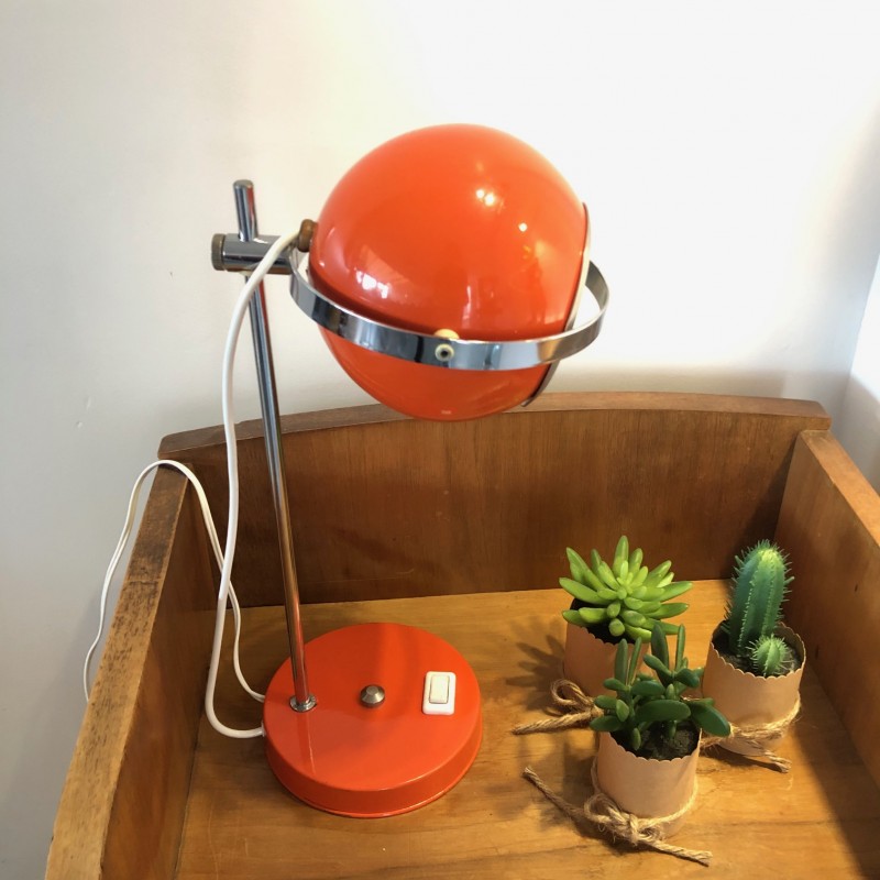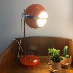 Lampe vinage EyeBall de la marque MONTEUSE DISDEROT. Peinture orange laqué.