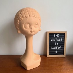 Bien aussi la tête Twiggy version nude !! Tête à chapeaux en parfait état à disposer partout dans la maison mais surtout sur sa jolie coiffeuse. Effet sixties garanti.