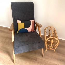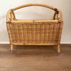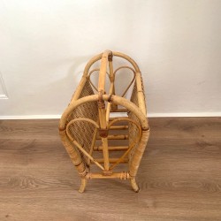 Pour les fauteuils et canapés qui se sentent seuls... un peu de chaleur au salon avec ce joli porte-revue en rotin et bambou.