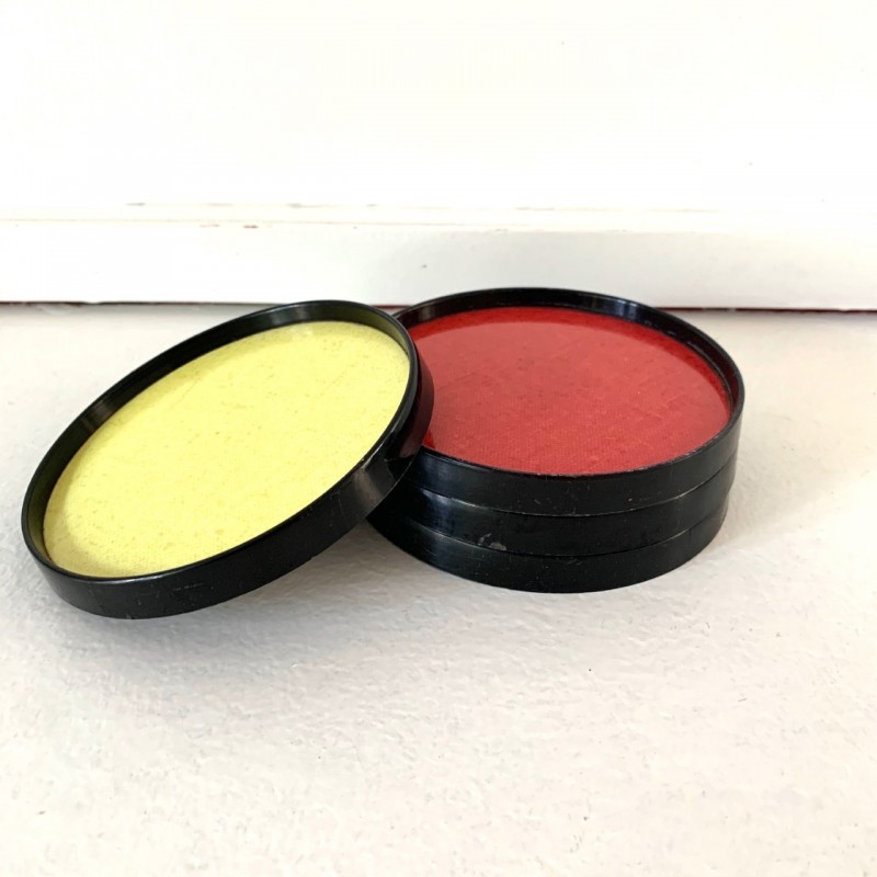 Des pti ronds, des pti ronds toujours des sous-verres... 4 sous-verres en Formica de couleur avec cerclage noir.