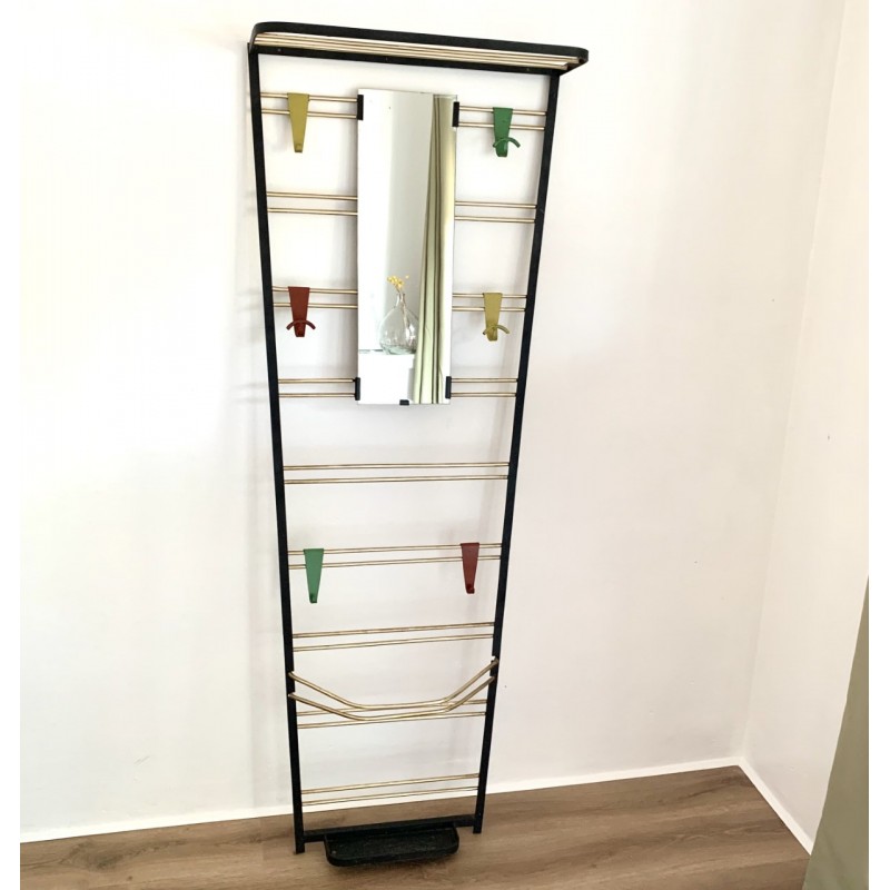 Pour un effet très Art Déco dans votre entrée : joli porte-manteaux vestiaire en acier noir laqué et doré avec juste ce qu’il faut de couleurs pep’s via ses 6 patères jaunes, vertes et rouges.