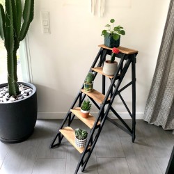 Marches poncées, laissés en bois brut et montants peints en noir pour un effet industriel.
