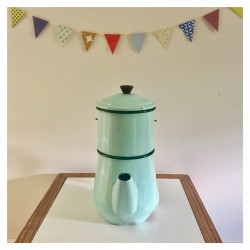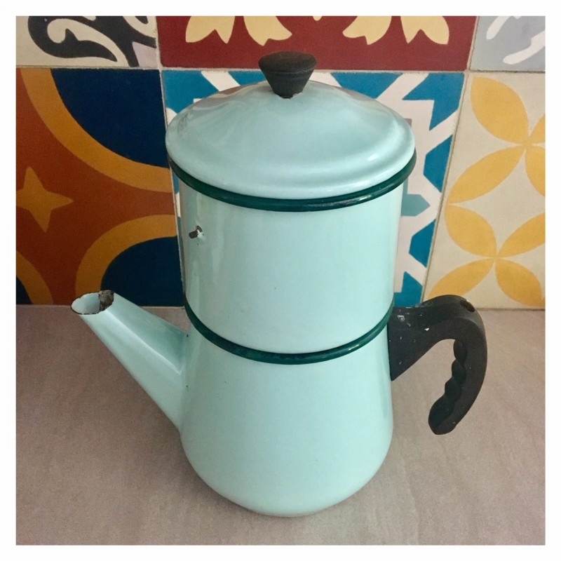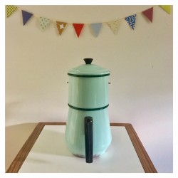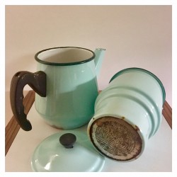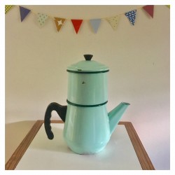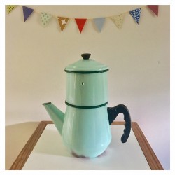 On la revoit encore sur la gazinière de notre grand-mère... Cette cafetière vintage en tôle émaillée bleu rétro... Parfaite pour la déco ! Hauteur 25cm.