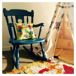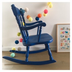 Ça balance, ça balance… Joli Rocking-chair enfant repeint en bleu nocturne pour un déco cosy dans la chambre de bébé.